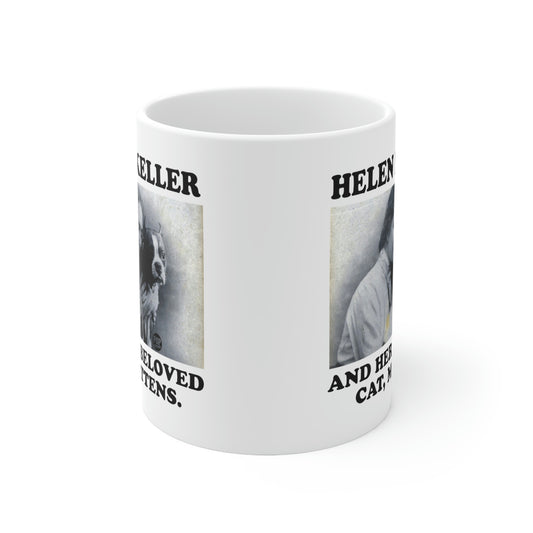 Helen Keller and Her Beloved Cat Mittens Mug – Vintage Photo Coffee Cup by Pop Factory® | Funny Historical Meme Gift