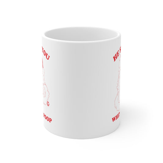 HE SEES YOU WHEN YOU POOP SANTA MUG